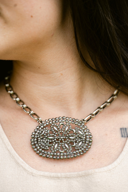 Vintage Silver French Steel Cut Shoe Buckle Necklace OOAK