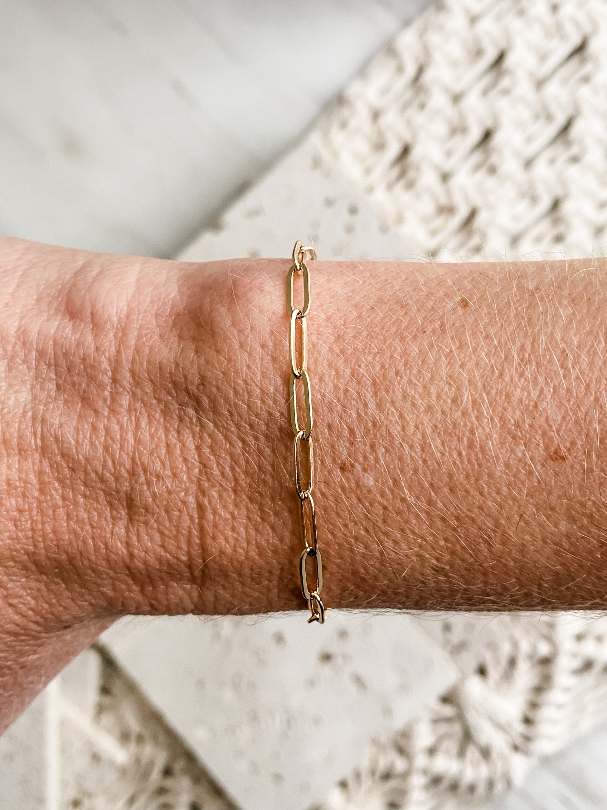 Simple, dainty and adjustable our Athena Bracelet is the perfect addition to any bracelet stack. Gold filled for everyday wear. Available in two adjustable sizes, 6.5”-7” and 7.5”-8”.