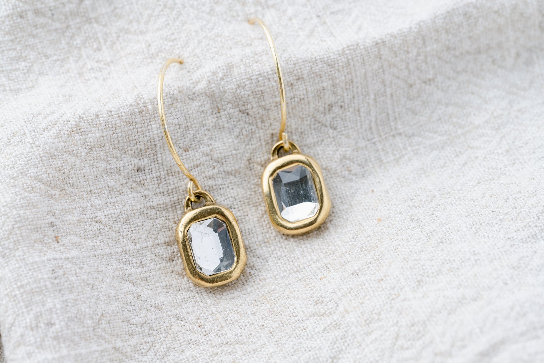 Elevate your elegance with the Bijou Earrings, featuring stunning emerald-shaped crystals that capture light beautifully. Their refined design adds a touch of sophistication, perfect for both formal occasions and everyday glamour. These earrings seamlessly blend classic charm with modern style, making them a timeless addition to your jewelry collection.