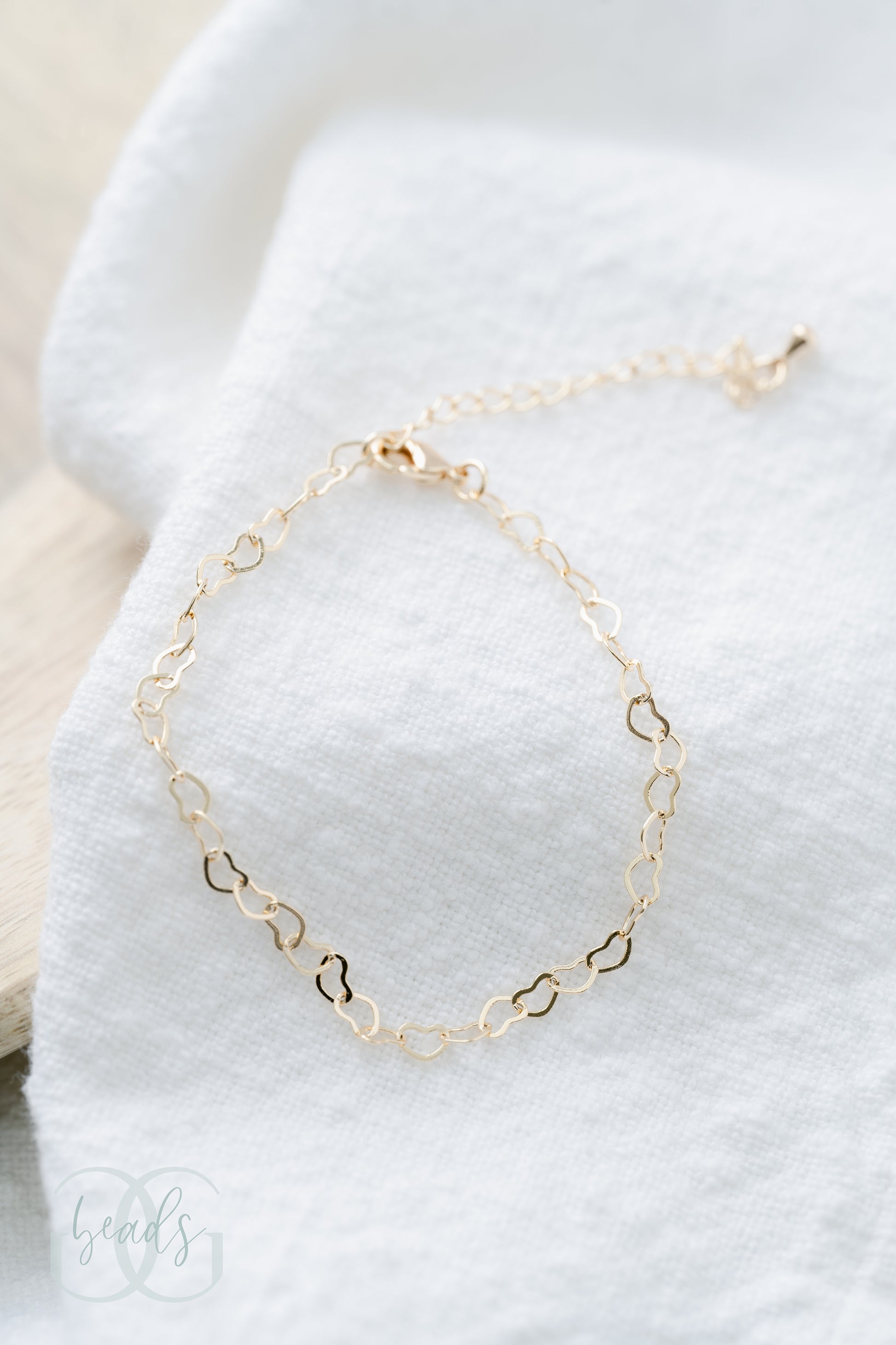 Intricately crafted, the Don't Break My Heart Bracelet features a delicate interlocking heart chain design. Perfect for adding a touch of elegance to any outfit, this bracelet symbolizes a bond that is unbreakable. A truly refined piece for those who appreciate the finer things in life.