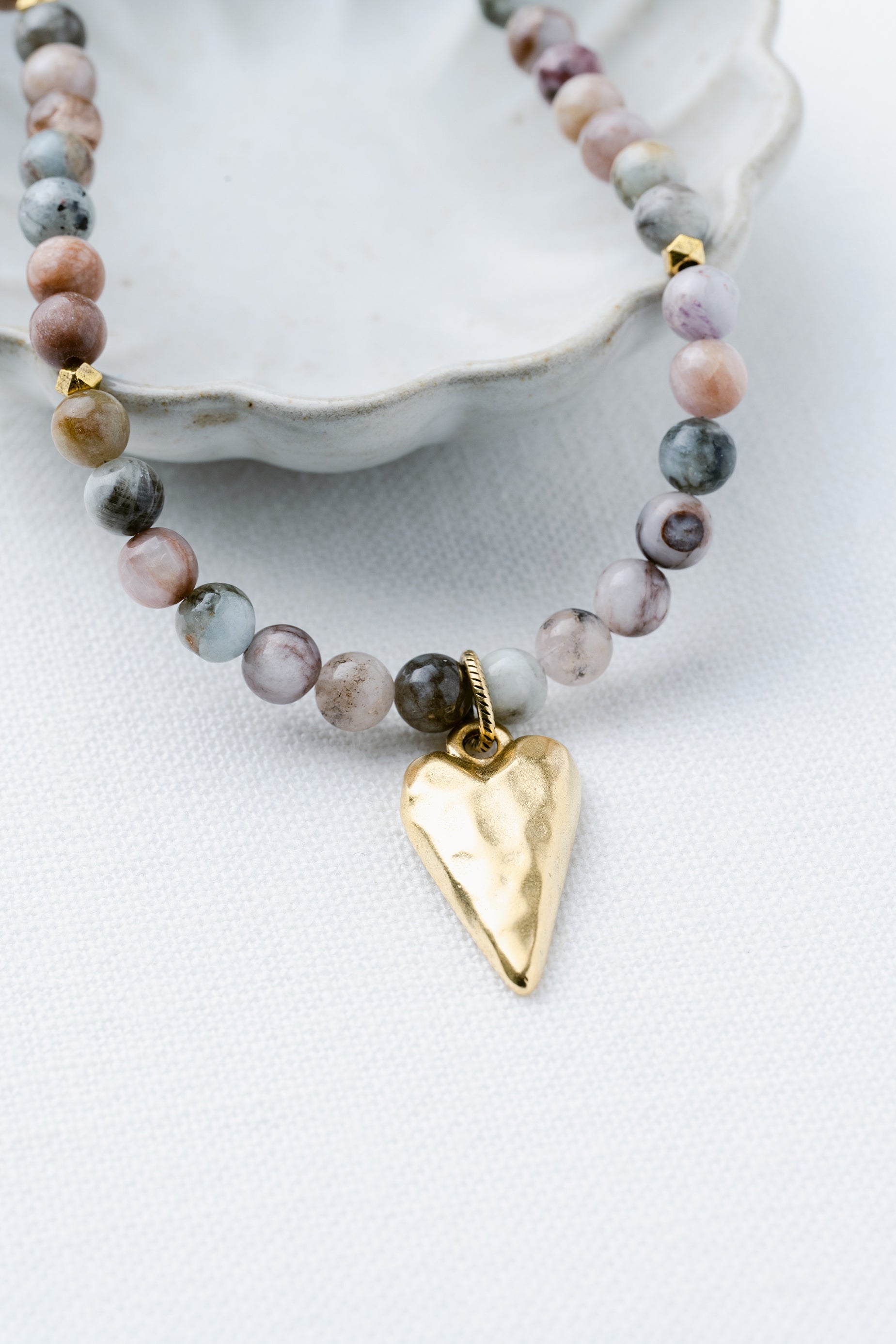 Add a touch of sparkle and sweetness with the Hearts Afire Beaded Necklace. Featuring soft, shimmering morganite beads that catch the light beautifully, this playful necklace is completed with a charming gold heart pendant. It's the perfect little sparkle to brighten any outfit and keep the love close all day long.