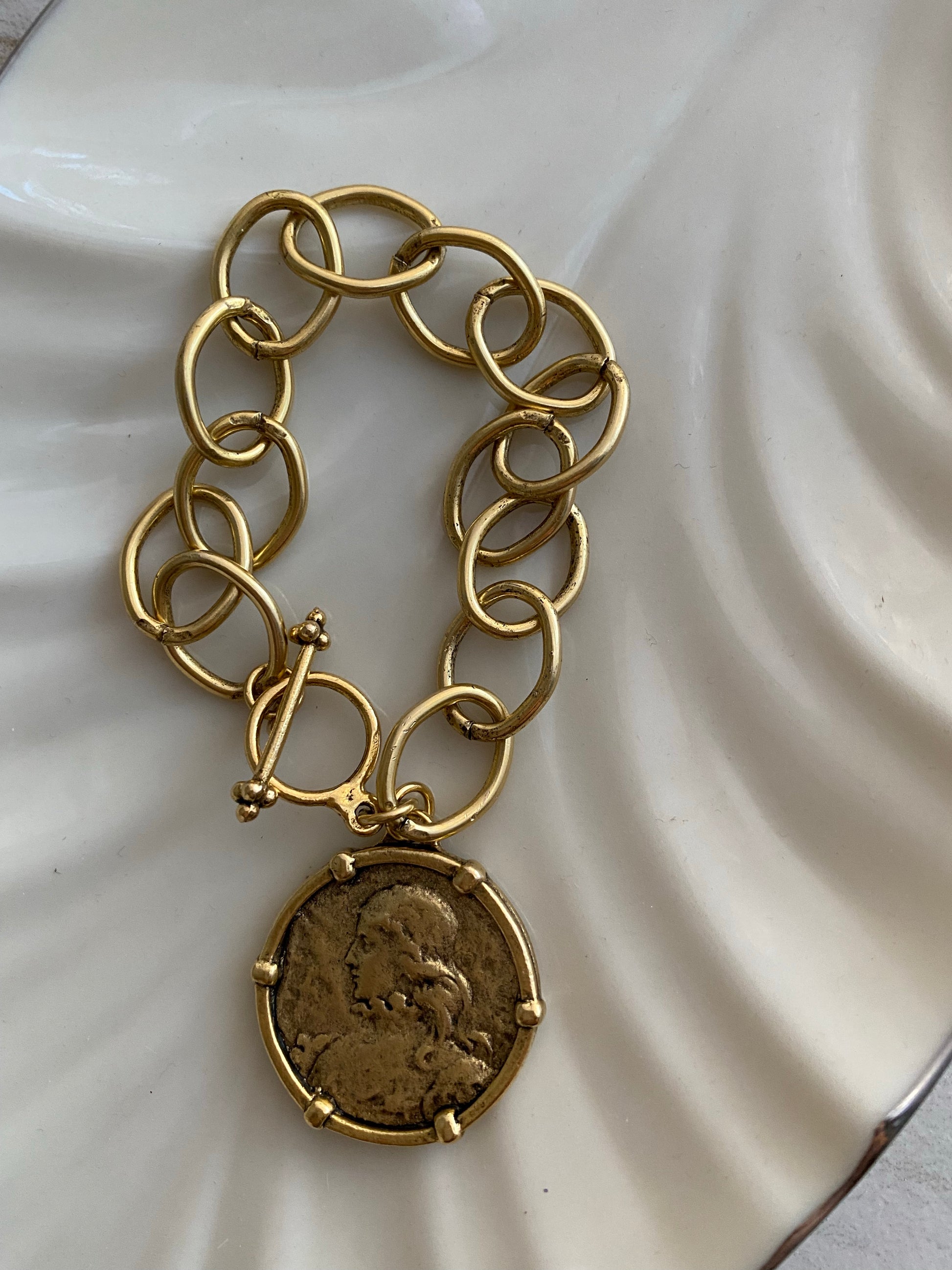 Our gorgeous Joan of Arc Coin now available in a bracelet.