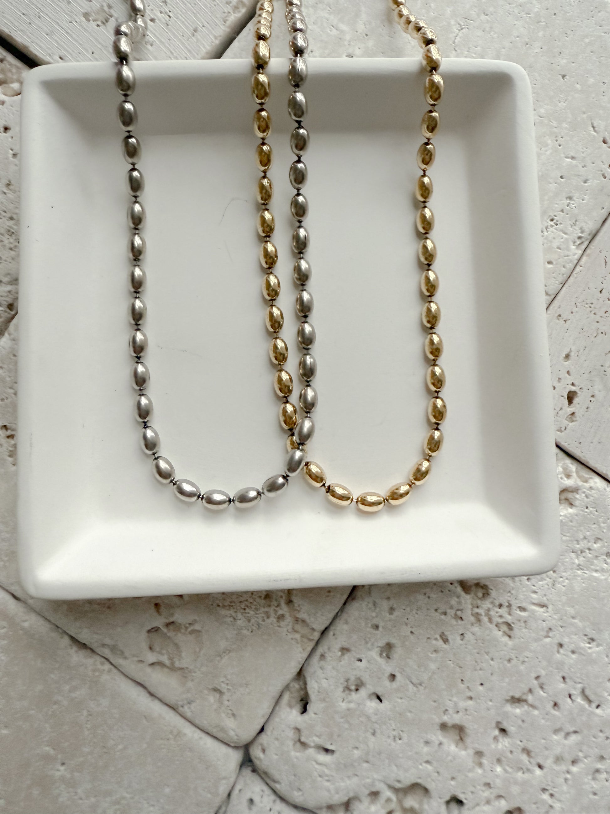 Create your own unique charm necklace with our Rice Bead Base Chain! This versatile chain allows for unlimited charm combinations, making it a true statement piece. Have fun and express your style with this customizable chain.