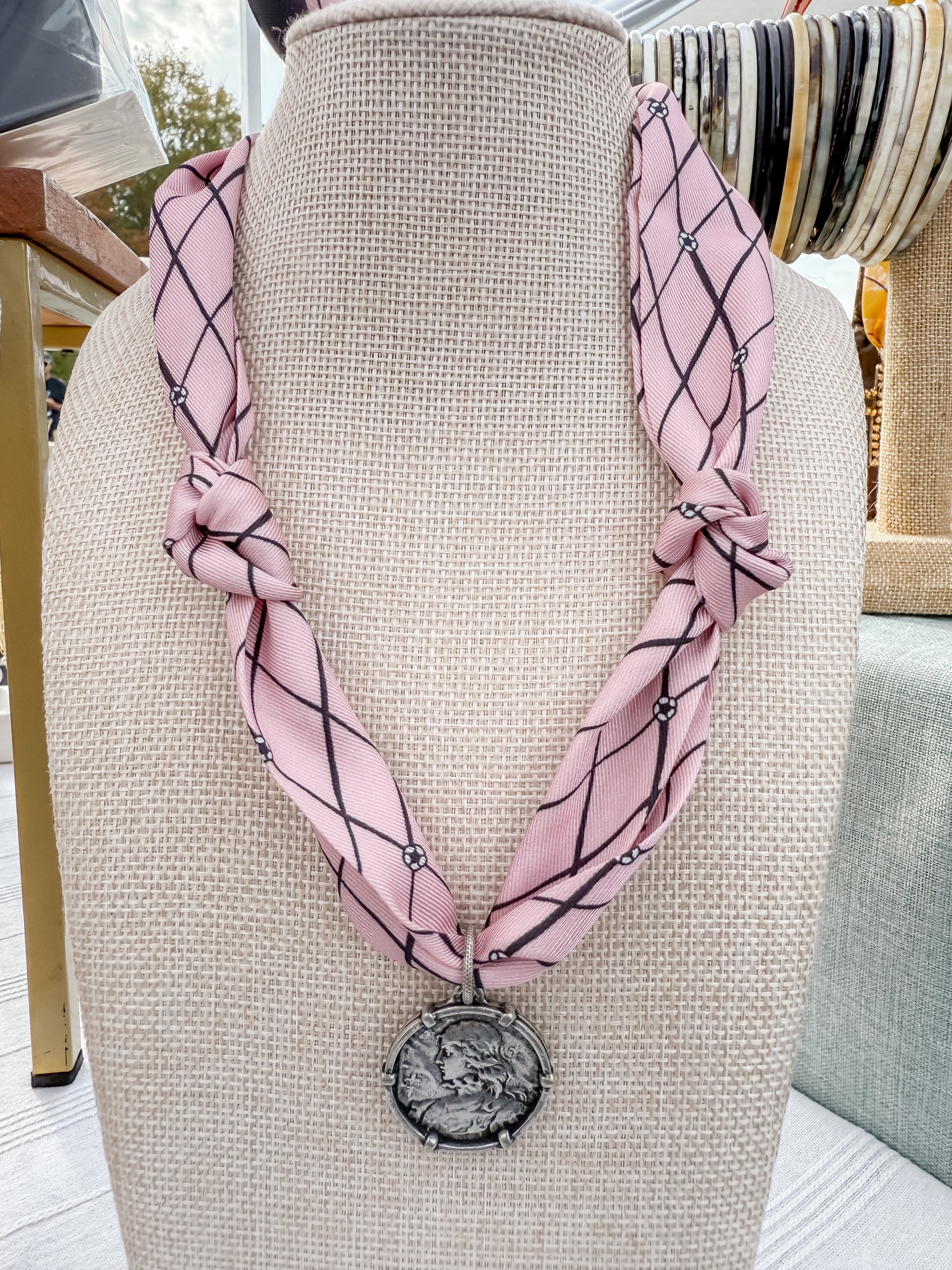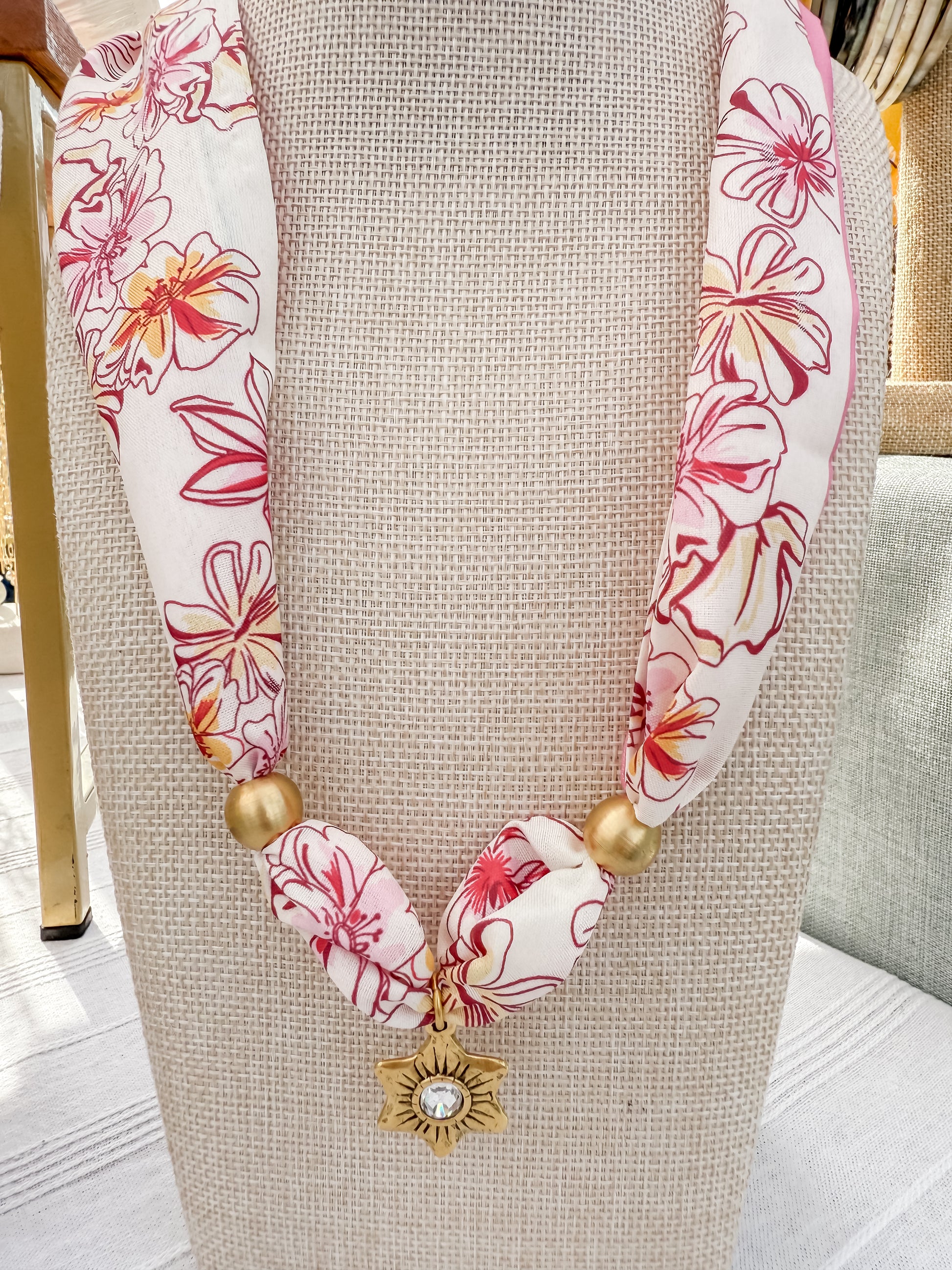 Find your perfect Scarf Necklace in your favorite shade of pink or red.