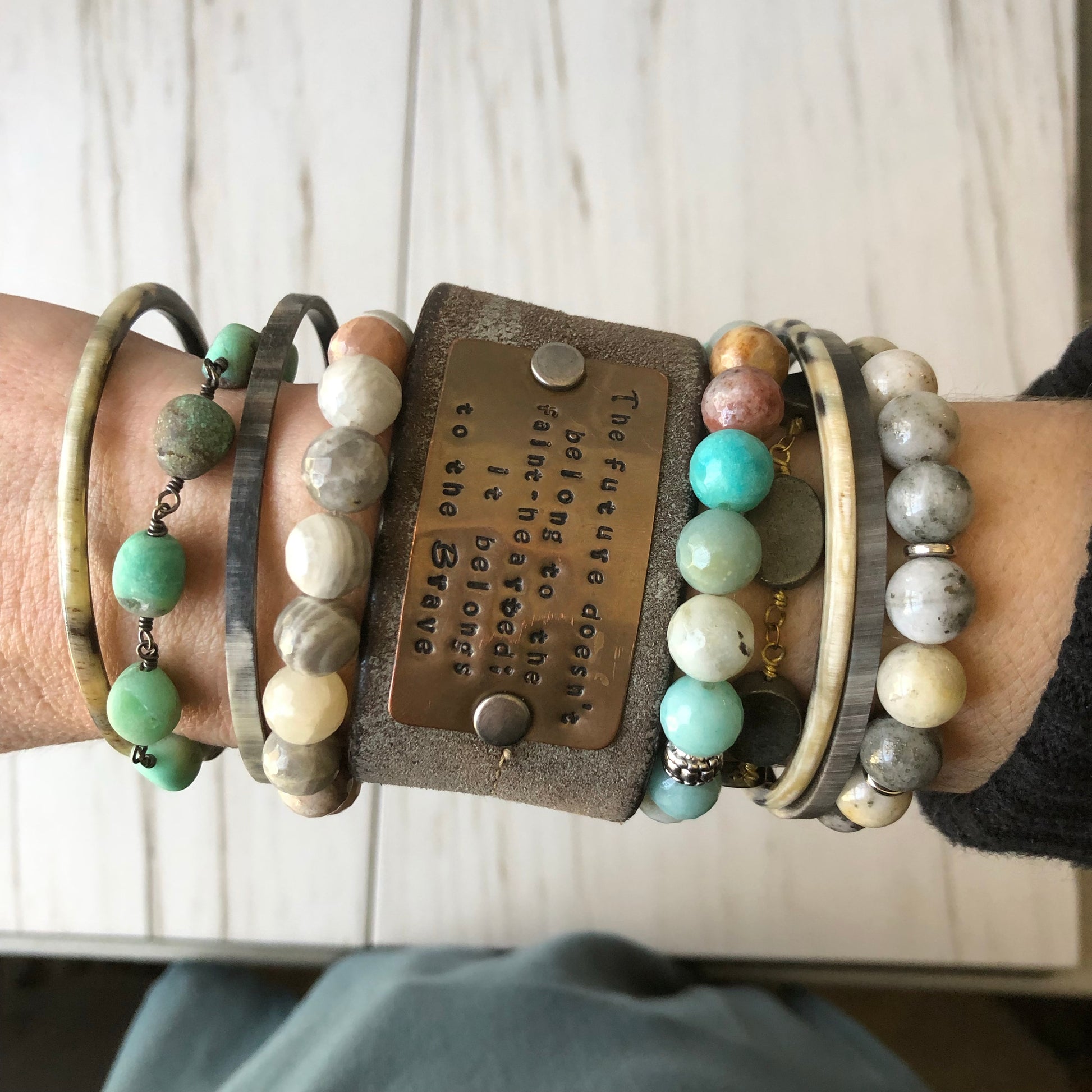 We use natural stones in some of our designs, which will vary in shape and color. Please be aware that while we do our best to photograph the colors true-to-life, all monitors display colors differently, please allow some variation between what you see on your screen and what you see in real life.