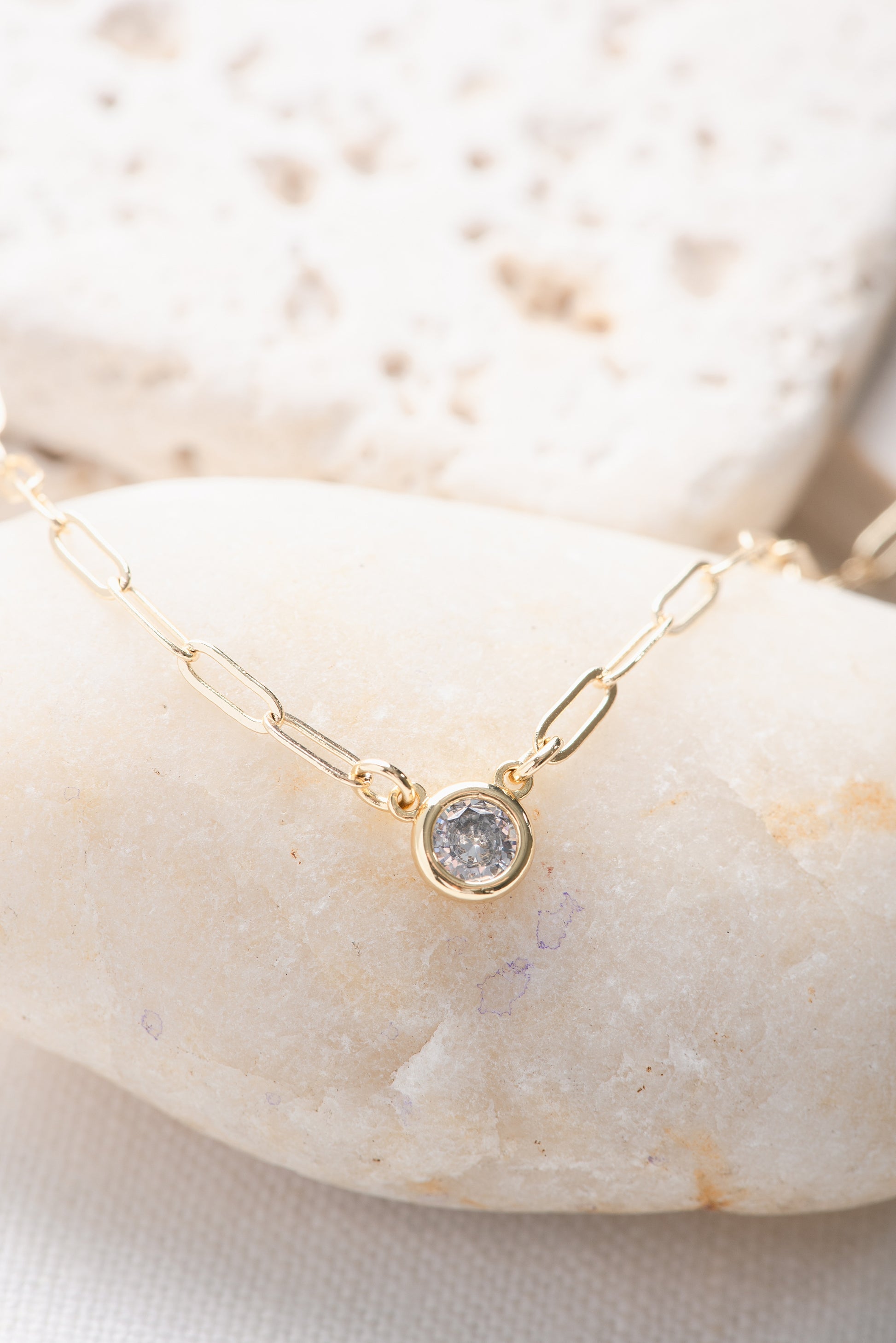 Upgrade your jewelry game with our Stellar Necklace. This elegant piece features a gold filled paperclip chain and a stunning round cz pendant. Sport a chic and effortless look with this versatile accessory. Perfect for any occasion, add a touch of sophistication to your style.